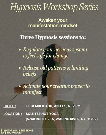 Join this powerful 3-part hypnosis journey designed to help you regulate your nervous system, release what no longer serves you, and step into your creative power so you can finally manifest with clarity, confidence, and inner alignment.